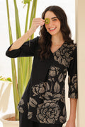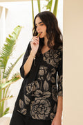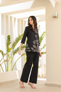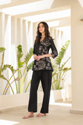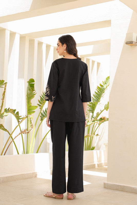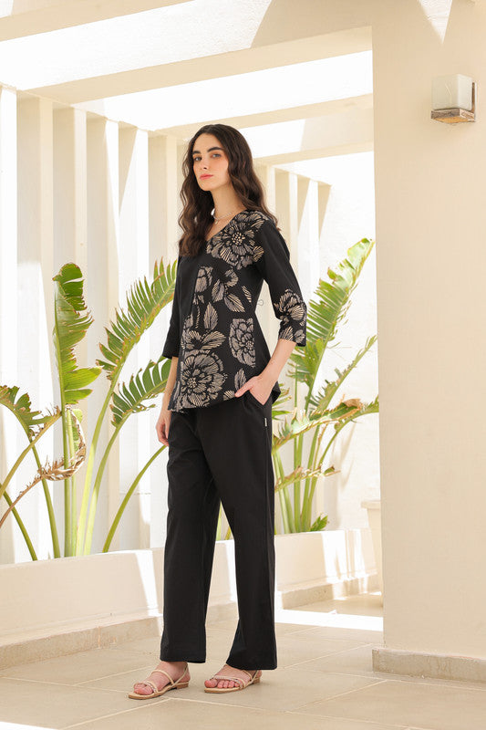 Midnight Black Floral Line Pattern Cotton Co-ord Set