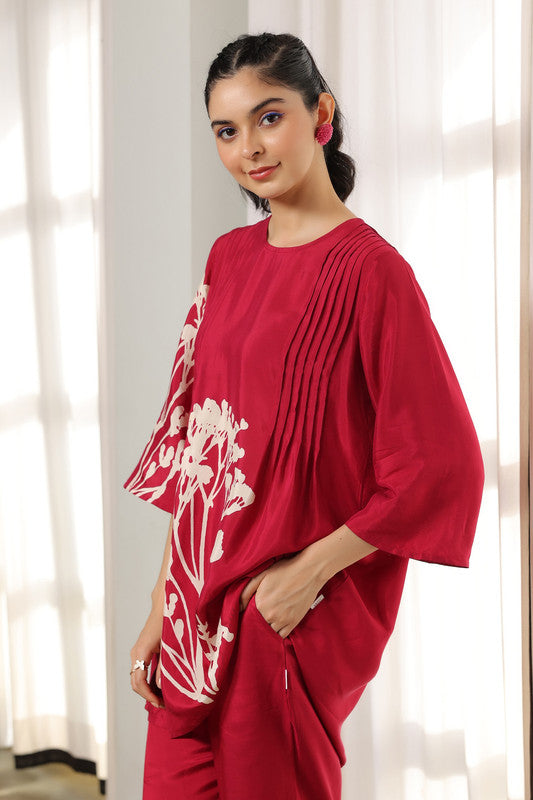 Red Leaf Russian Silk Co-ord set