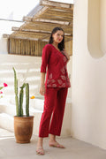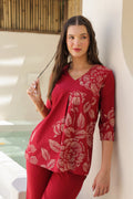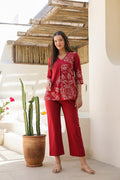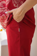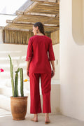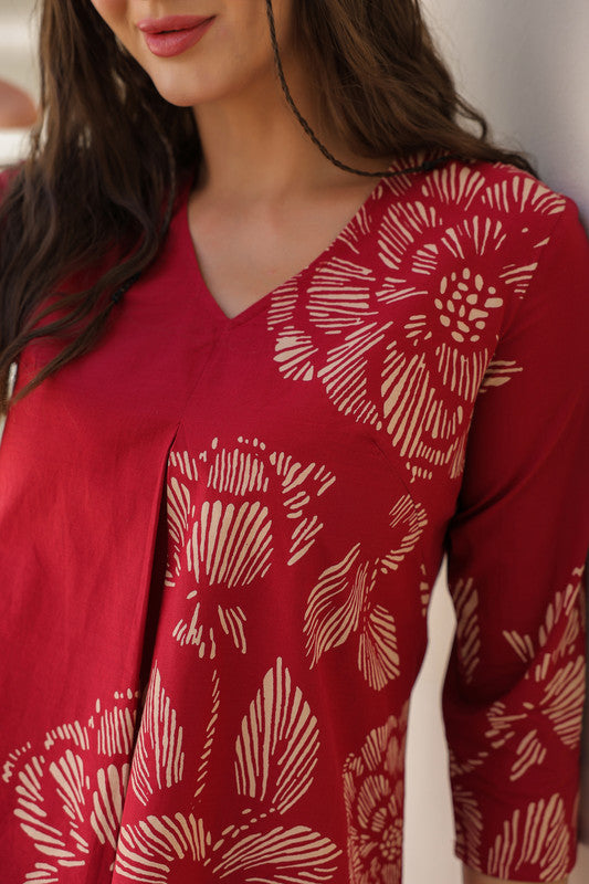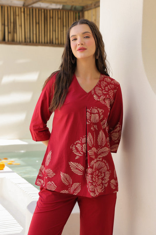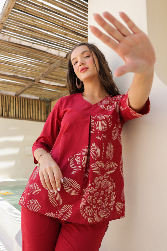 Ruby Red Floral Line Pattern Cotton Co-ord Set
